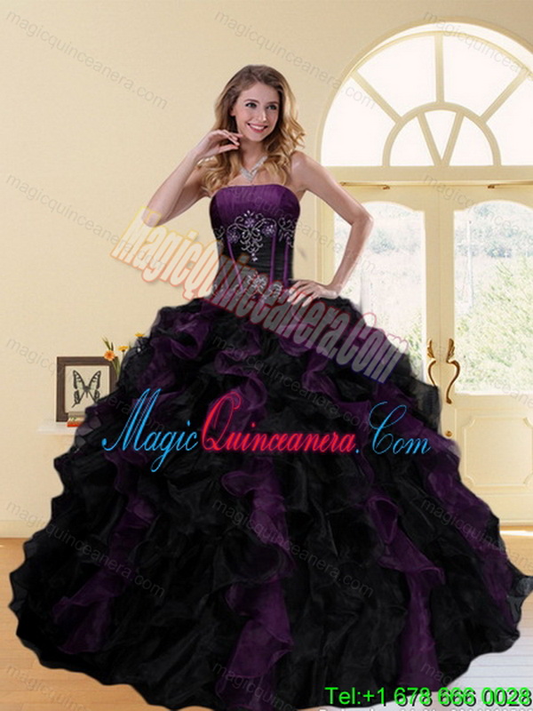 Luxury 2015 Strapless Multi Color Ruffled Quinceanera Dresses with Beading