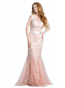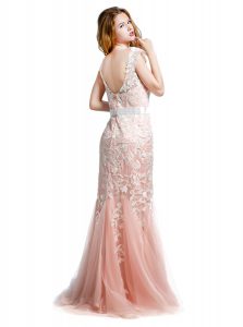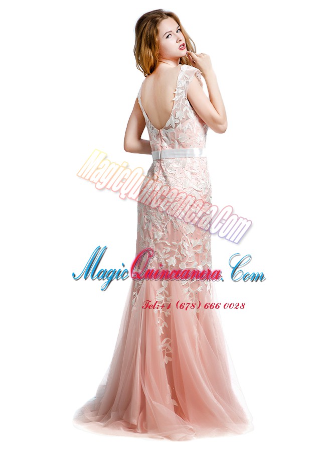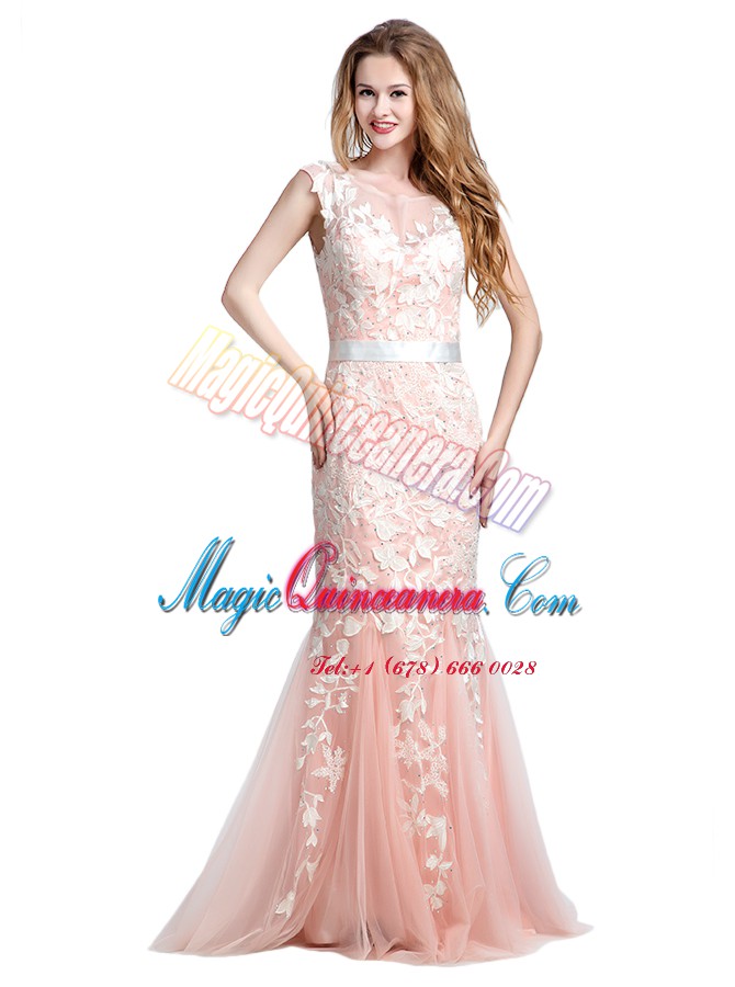 Luxury Scoop Cap Sleeves Brush Train Lace and Appliques Zipper Prom Dresses
