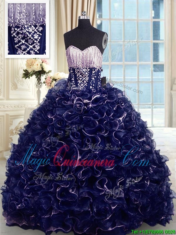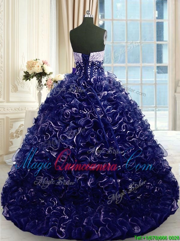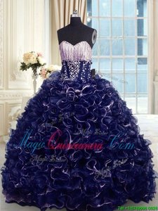 Luxury Sleeveless Brush Train Lace Up With Train Beading and Ruffles Vestidos de Quinceanera