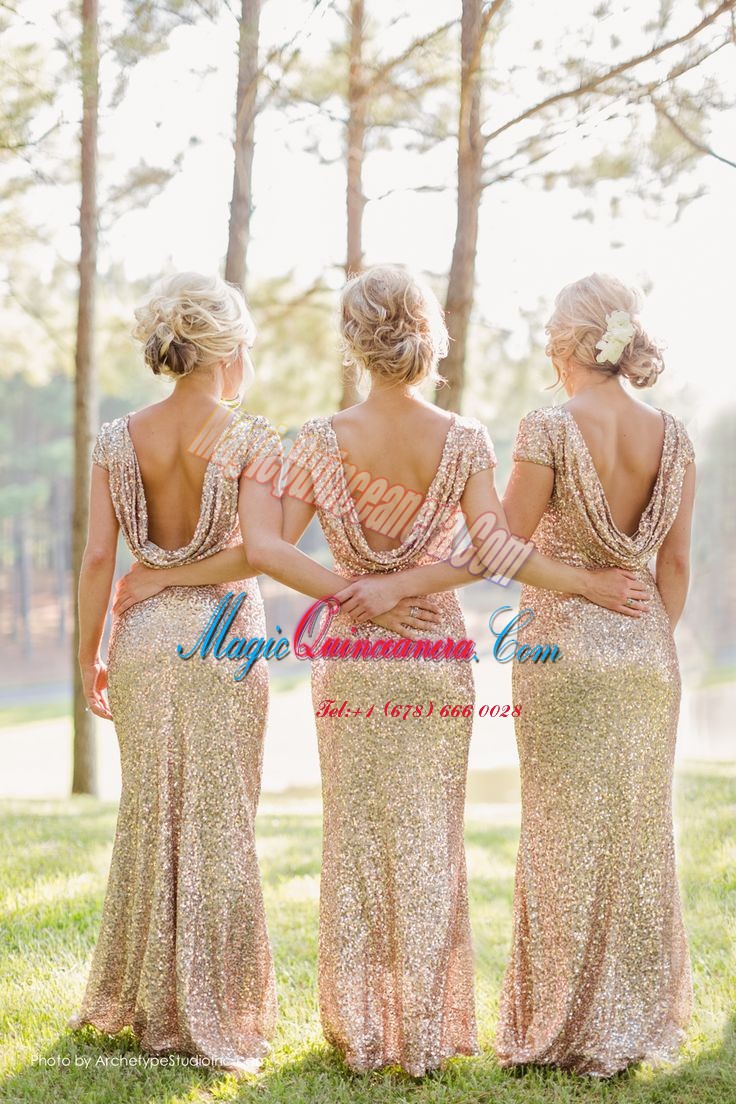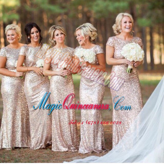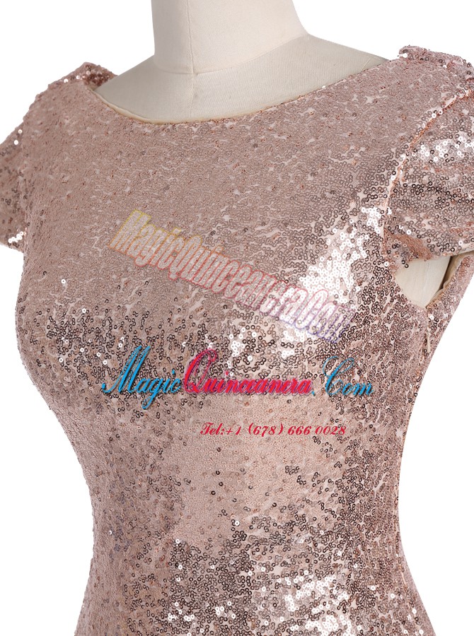 Mermaid Scoop Cap Sleeves Sequins Zipper Dress for Prom