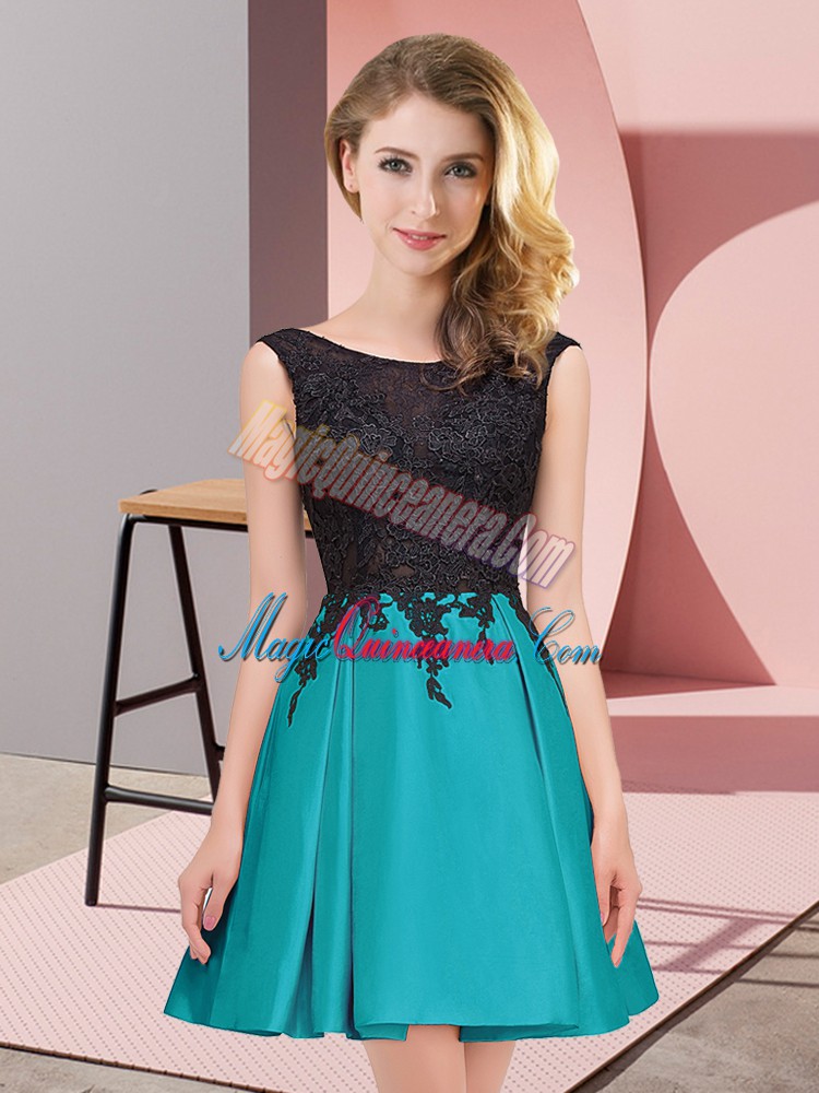 Mini Length Teal Quinceanera Dama Dress Scoop Sleeveless Zipper