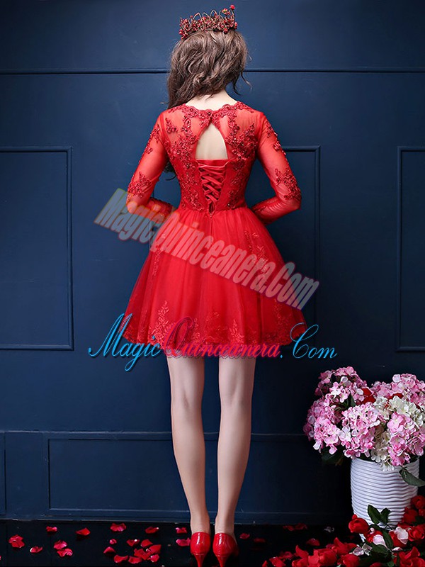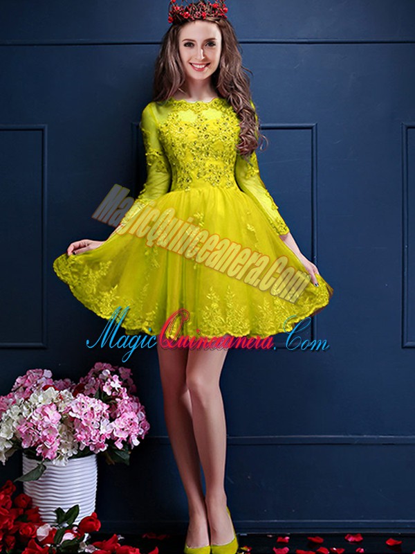 Mini Length Yellow Quinceanera Dama Dress Chiffon 3 4 Length Sleeve Beading and Lace and Appliques
