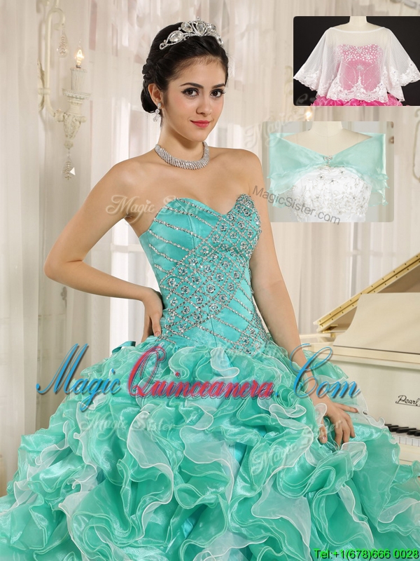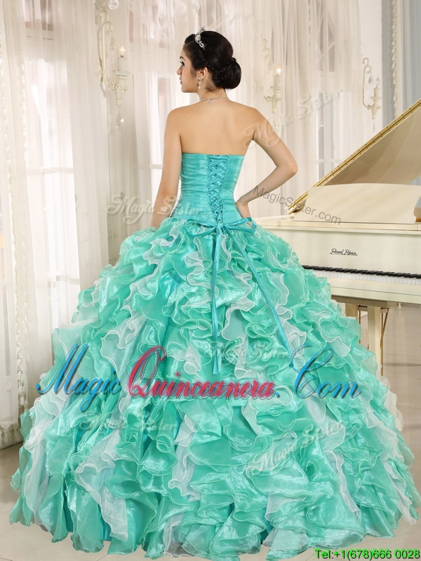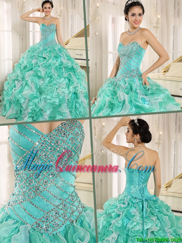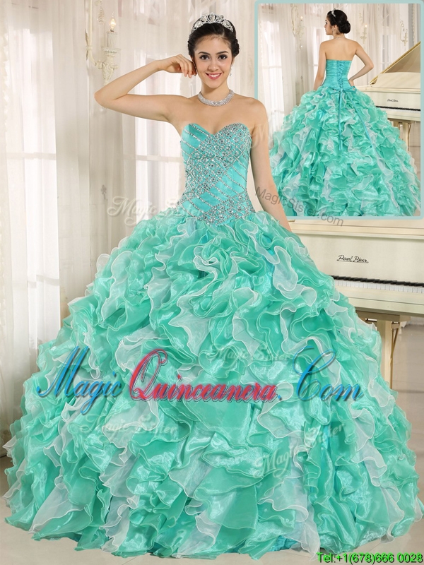 Modern Beading and Ruffles Apple Green Quinceanera Dresses