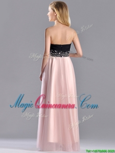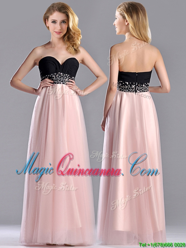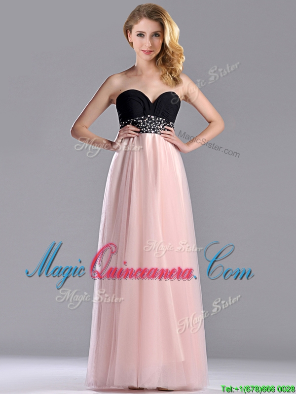 Modern Empire Beaded and Ruched Dama Dress in Baby Pink and Black