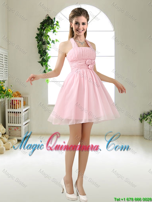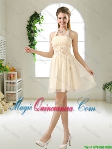 brand best new family celebration dress, Modern Halter Top Champagne Dama Dresses with Hand Made Flowers