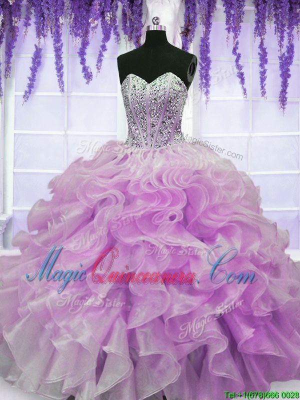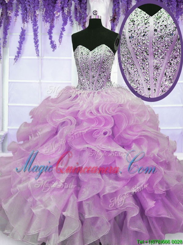 , Modern Lilac Sleeveless Beading and Ruffles Floor Length Sweet 16 Dress