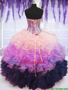 Modern Multi-color Ball Gowns Sweetheart Sleeveless Organza Floor Length Lace Up Beading and Ruffles and Ruffled Layers Quinceanera Gowns