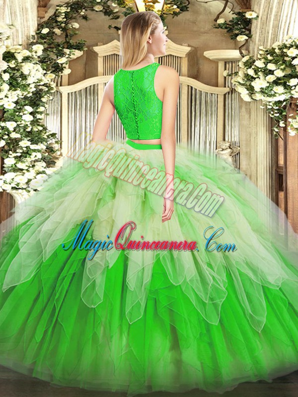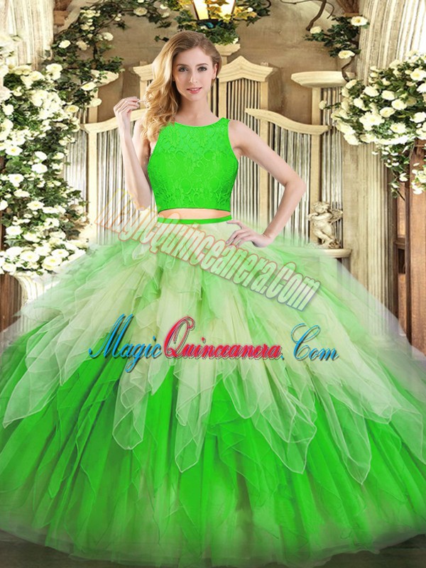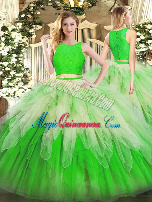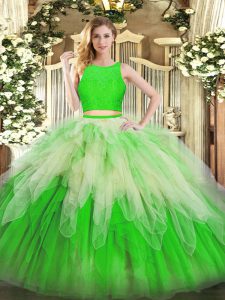 , Modern Scoop Sleeveless Organza Ball Gown Prom Dress Lace and Ruffles Zipper