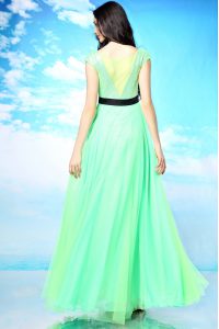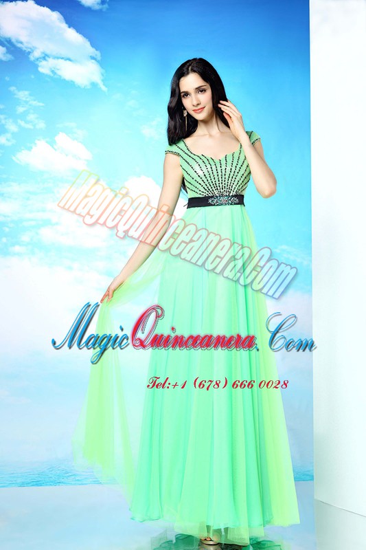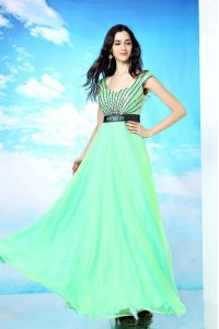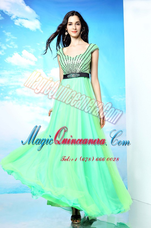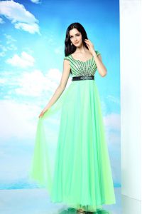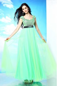 Modest Chiffon Sleeveless Floor Length Prom Dresses and Beading