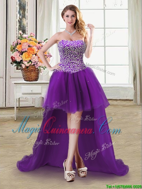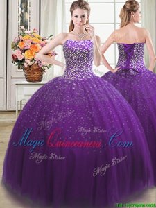 Modest Four Piece Floor Length Ball Gowns Sleeveless Purple Quinceanera Dress Lace Up