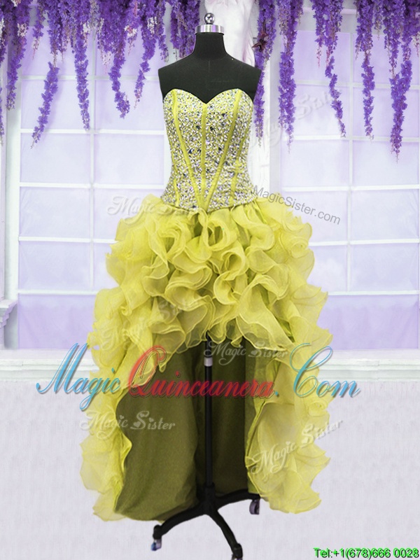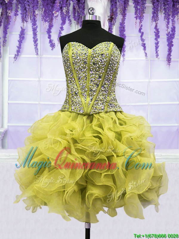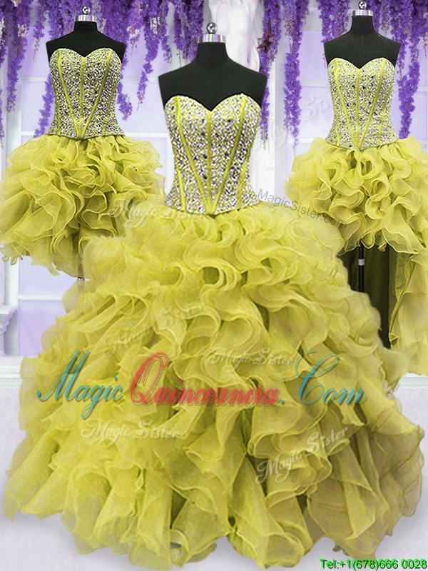 Modest Four Piece Light Yellow Sweetheart Neckline Beading and Ruffles Sweet 16 Dress Sleeveless Lace Up