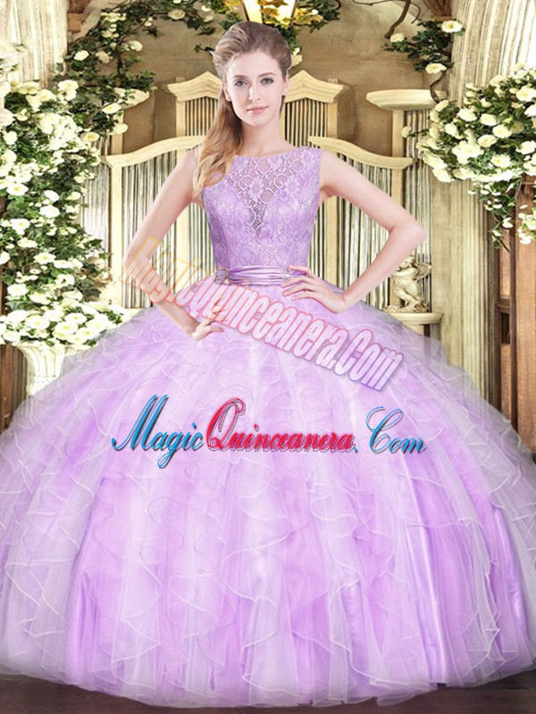 , Modest Sleeveless Backless Floor Length Lace and Ruffles Sweet 16 Dresses