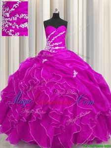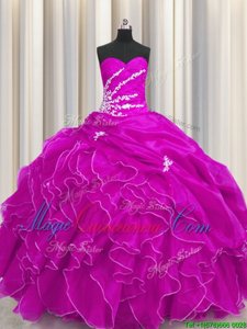 Visible Boning Organza Sleeveless Floor Length Quince Ball Gowns and Beading and Ruffles