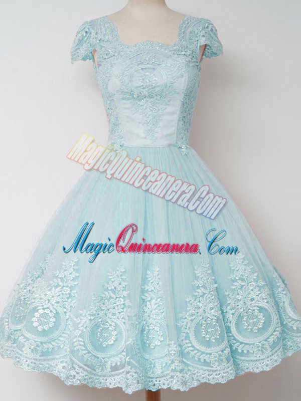 Modest Square Cap Sleeves Tulle Quinceanera Court Dresses Lace Zipper