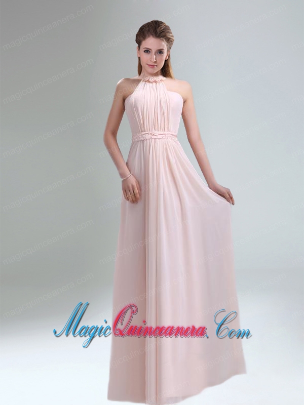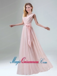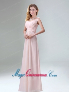 Most Beautiful Chiffon Light Pink Empire Dama Dress with Ruching