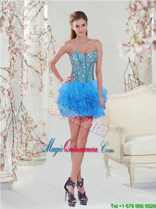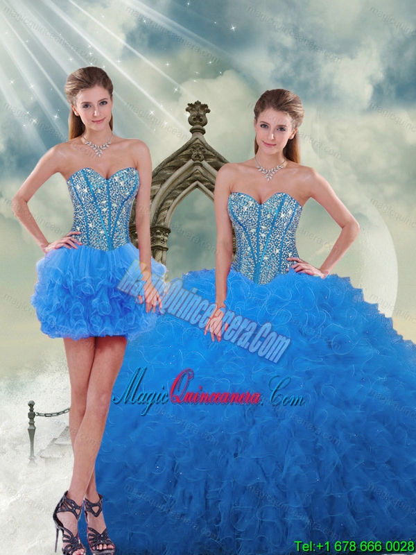 Most Popular and Detachable Aqua Blue Sweet 16 Dresses with Beading and Ruffles
