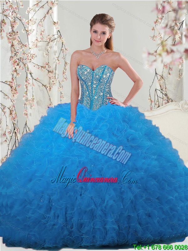 pretty blue quincianera dresses with beading,