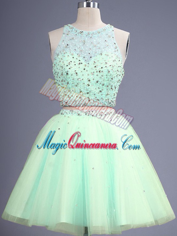 Most Popular Apple Green Dama Dress Prom and Party and Wedding Party with Beading Scoop Sleeveless Lace Up