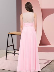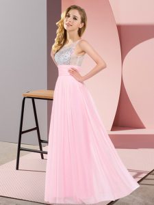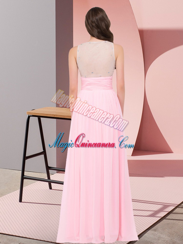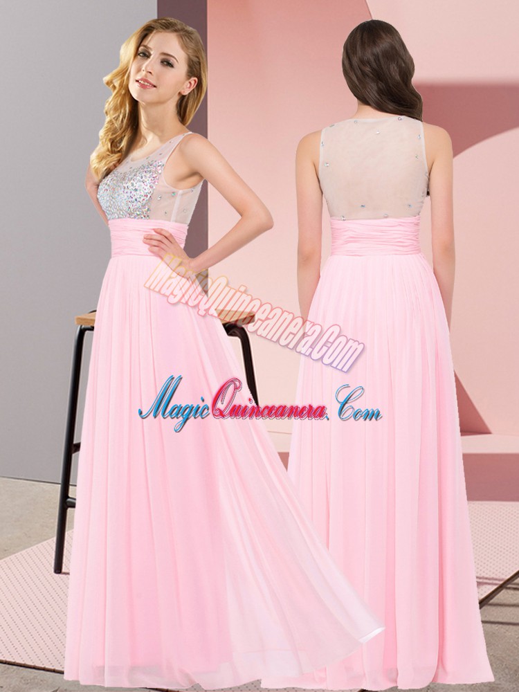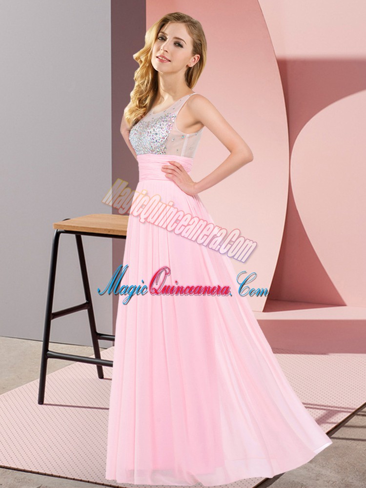 Most Popular Floor Length Baby Pink Vestidos de Damas Scoop Sleeveless Side Zipper