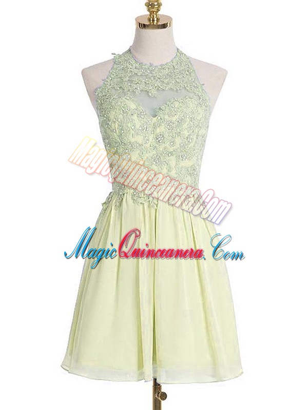 , Most Popular Light Yellow Sleeveless Appliques Knee Length Dama Dress