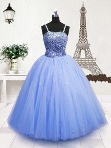 Most Popular Sleeveless Zipper Floor Length Beading and Sequins Pageant Dress