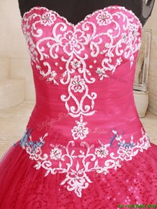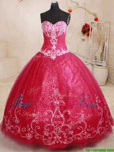 Most Popular Sweetheart Sleeveless Lace Up Sweet 16 Dress Coral Red Tulle
