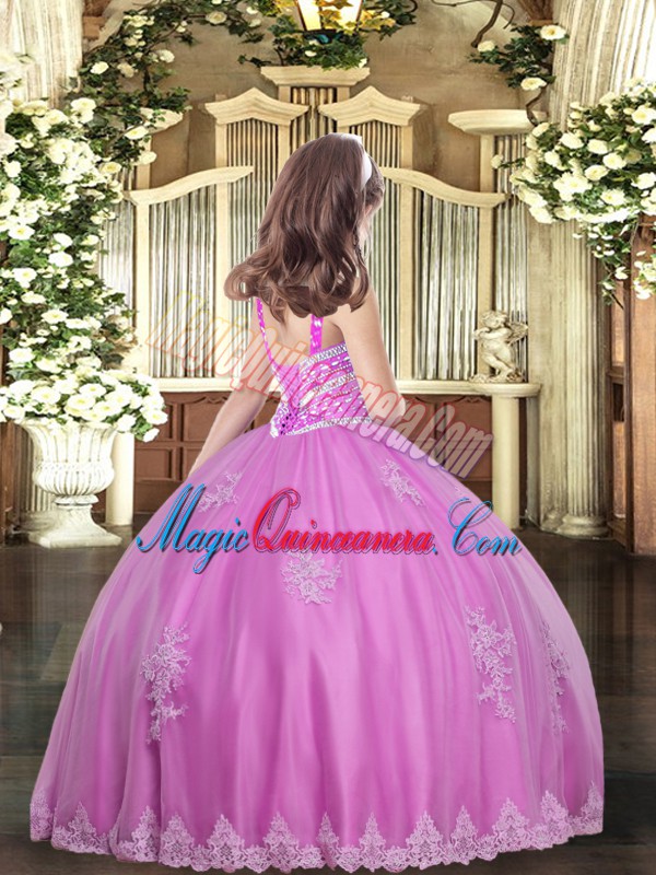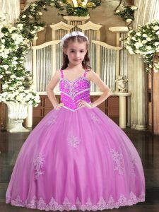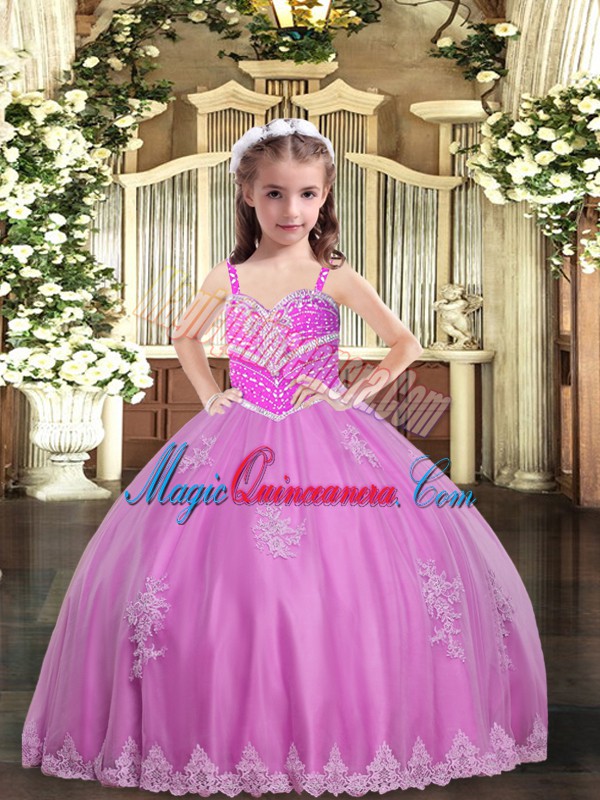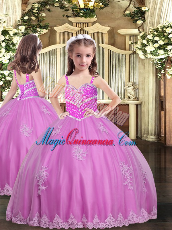 Most Popular Tulle Straps Sleeveless Lace Up Appliques Little Girls Pageant Dress Wholesale in Lilac