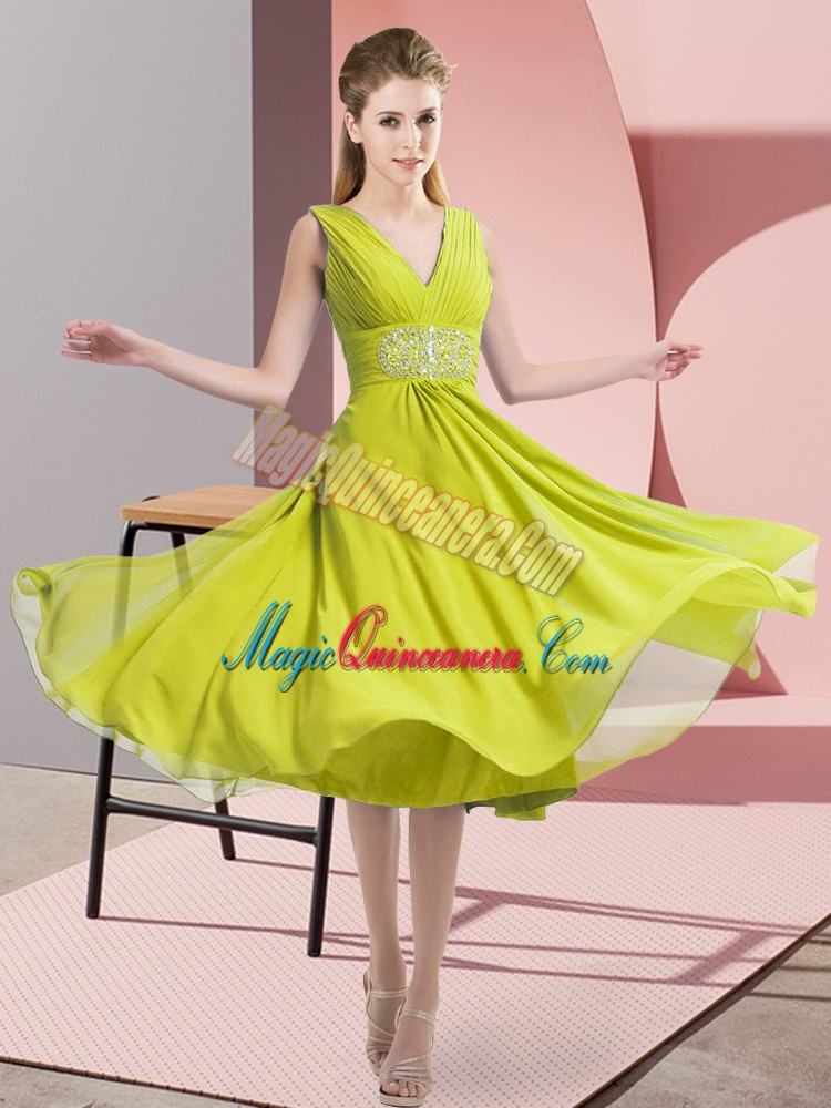 Most Popular V-neck Sleeveless Chiffon Vestidos de Damas Beading Side Zipper