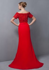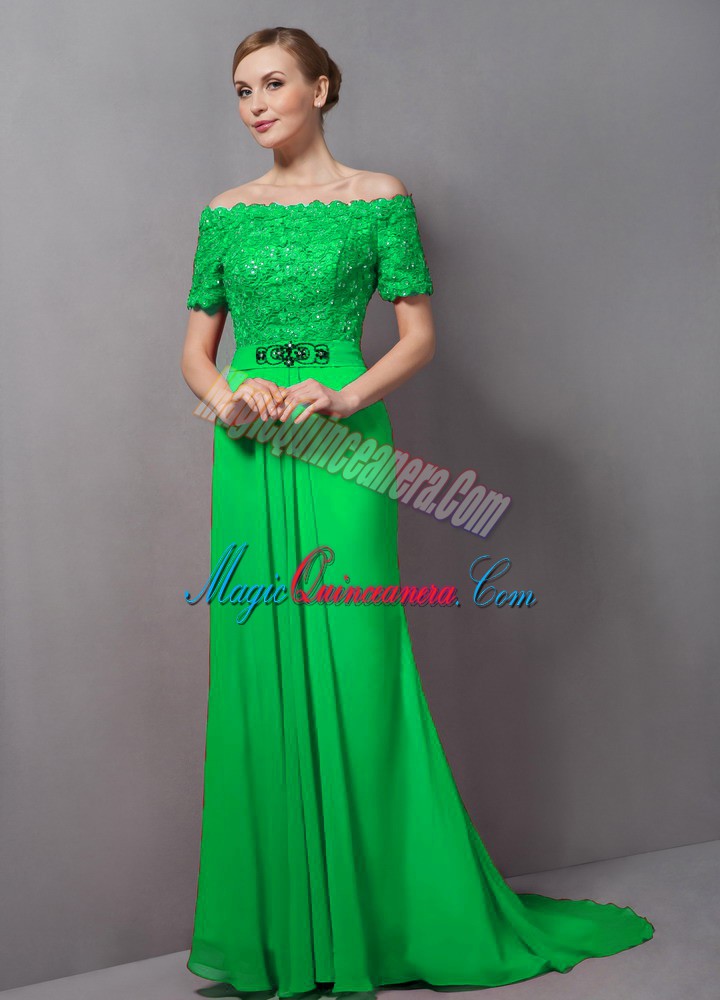 Mother of the Bride Dress Off The Shoulder Short Sleeves Sweep Train Zipper