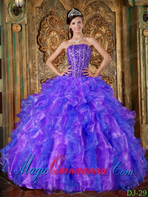 organza quinceanera dress, Multi-Color Ball Gown Strapless Floor-length Organza Beading and Ruffles Lovely Sweet 16 Dresses
