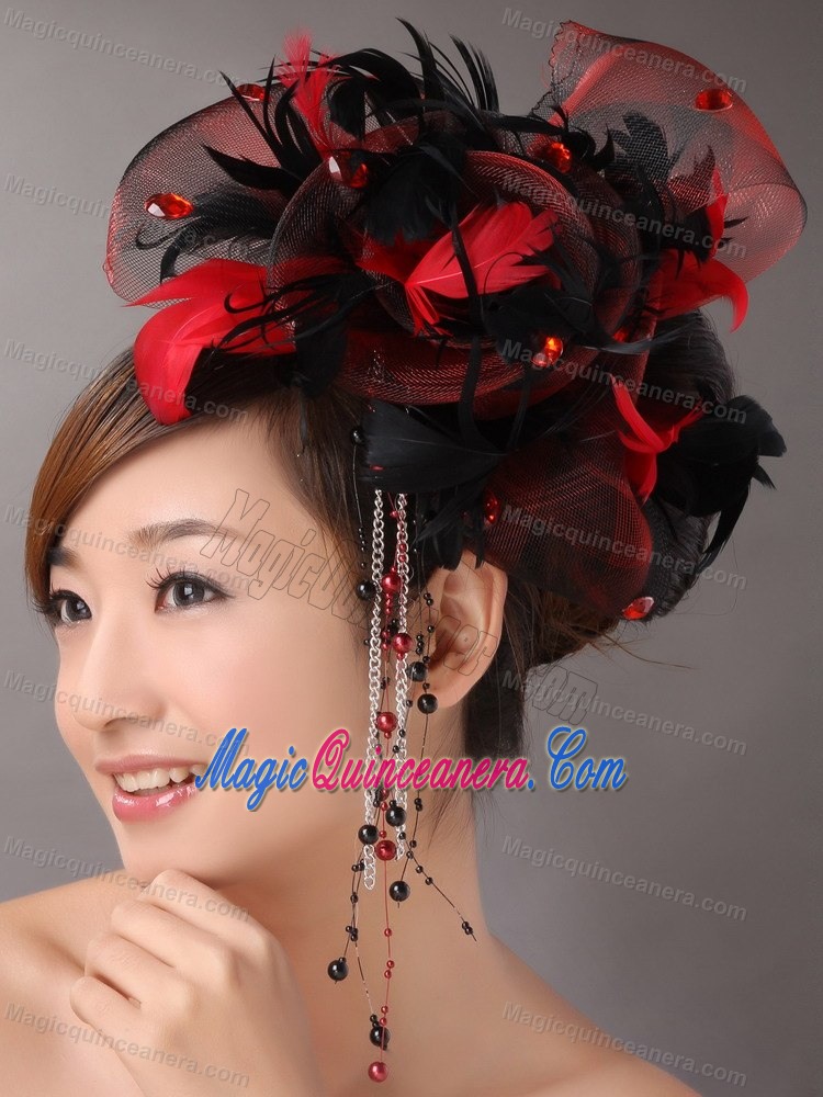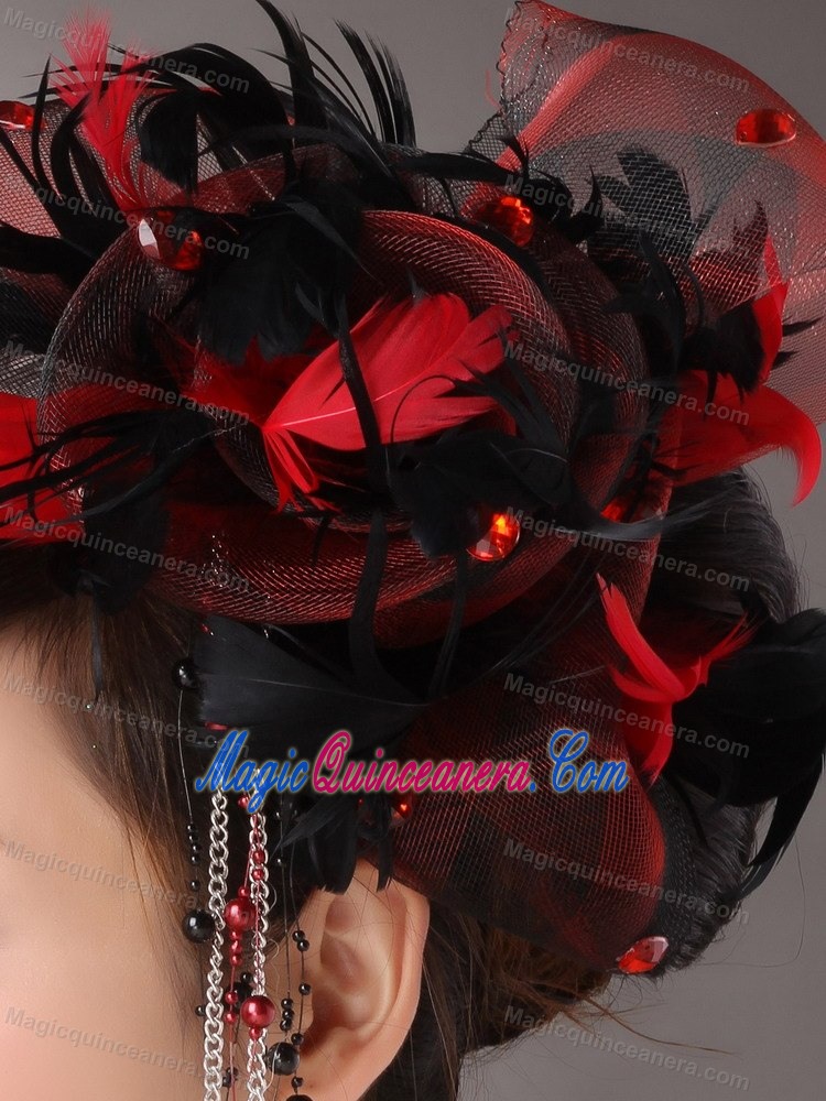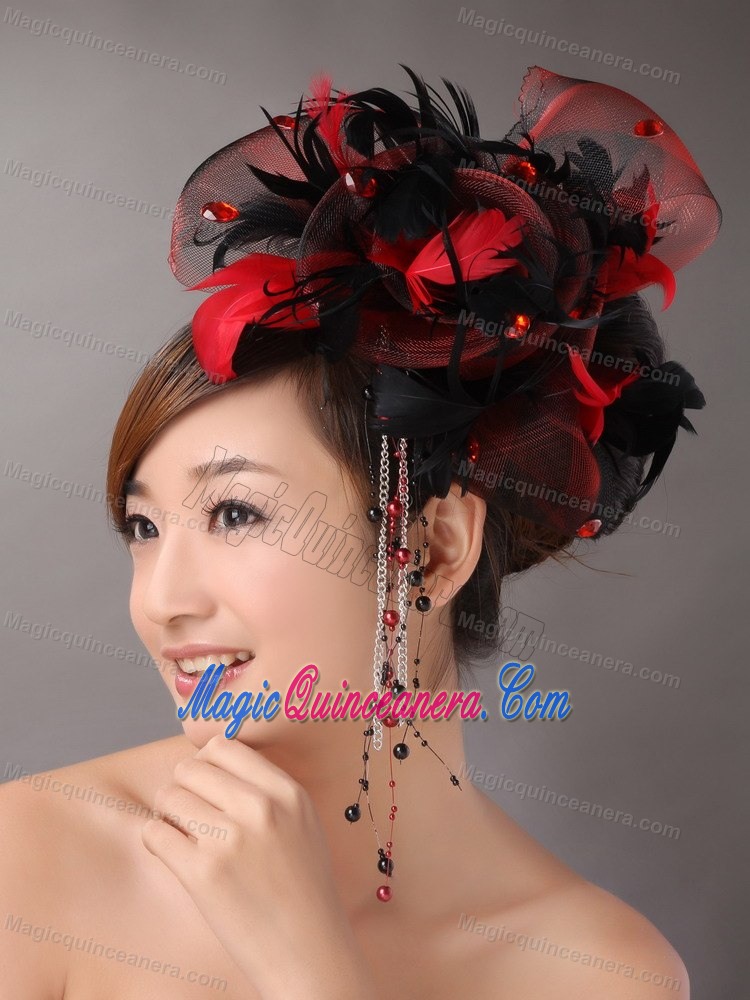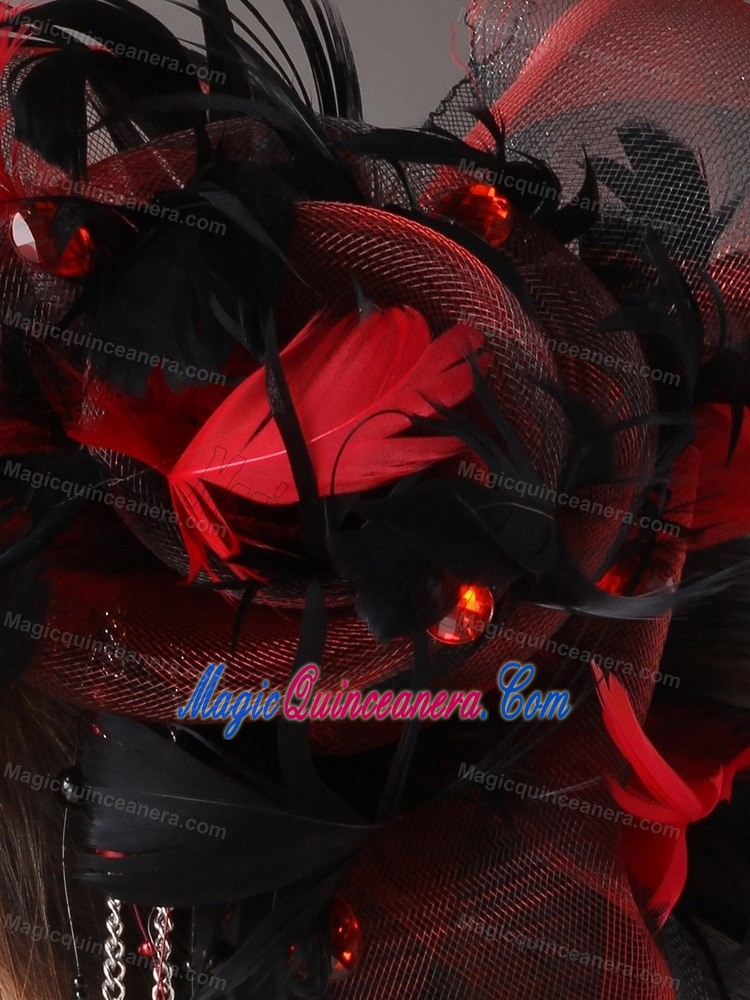 Multi-color Headpices With Feather and Tulle Headpices Rhinestones Decorate
