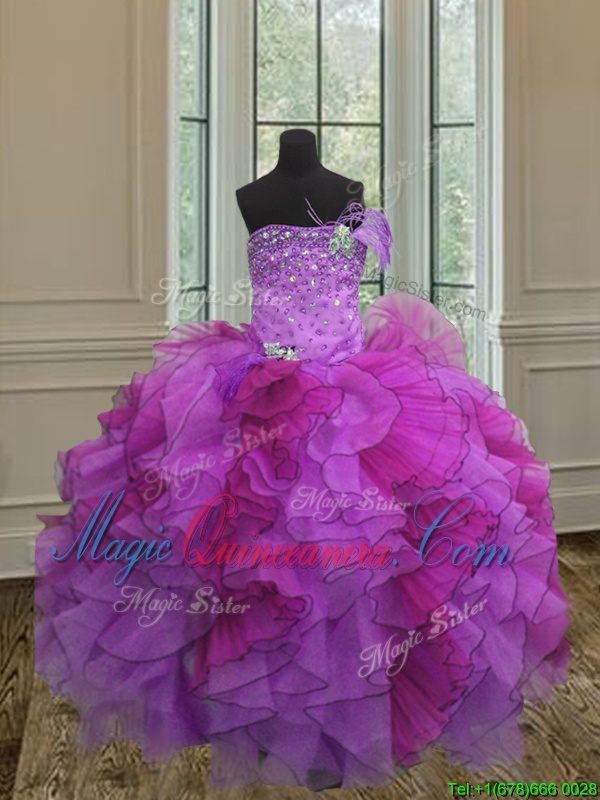 Multi-color Lace Up Strapless Beading and Ruffles Quinceanera Gown Organza Sleeveless - Magic Quinceanera