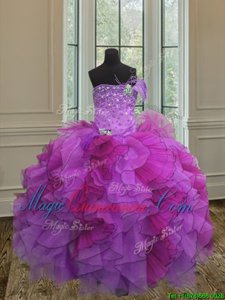 Multi-color Lace Up Strapless Beading and Ruffles Quinceanera Gown Organza Sleeveless