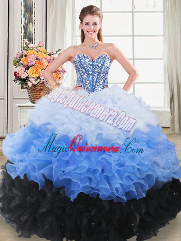 , Multi-color Lace Up Sweet 16 Dresses Beading and Ruching Sleeveless Floor Length