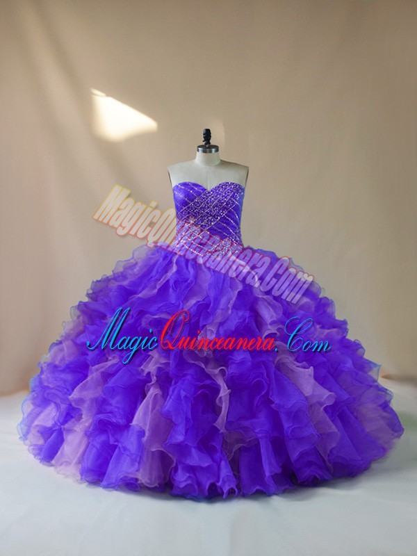 Multi-color Lace Up Sweet 16 Quinceanera Dress Beading and Ruffles Sleeveless Floor Length