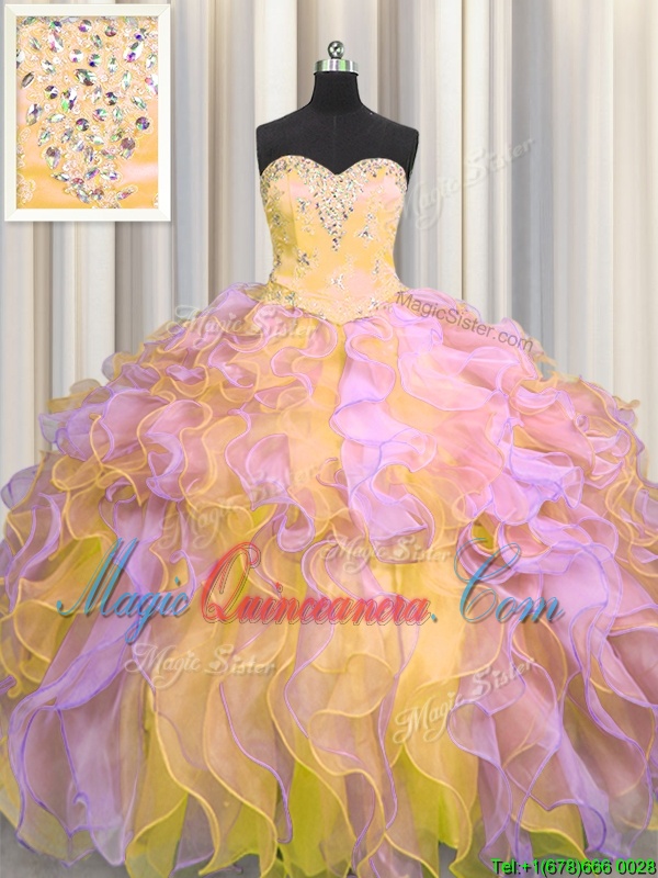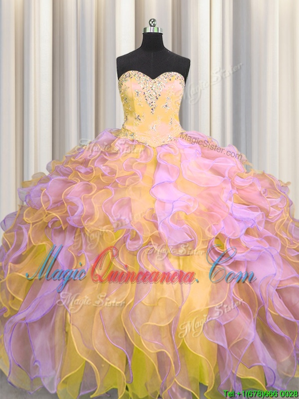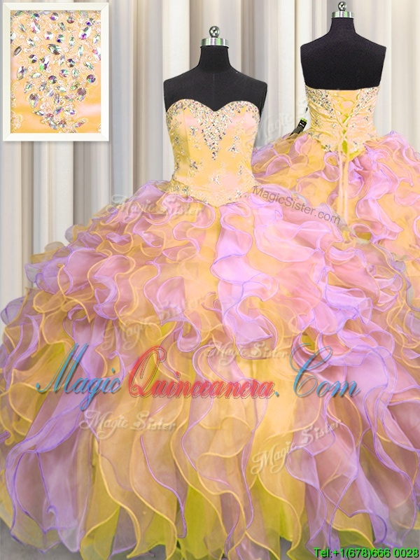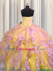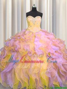 Multi-color Lace Up Sweetheart Beading and Appliques and Ruffles Vestidos de Quinceanera Organza Sleeveless