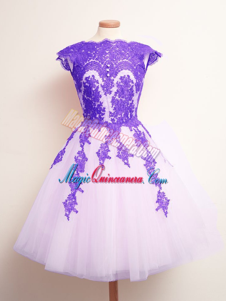 Multi-color Lace Up Vestidos de Damas Appliques Sleeveless Mini Length