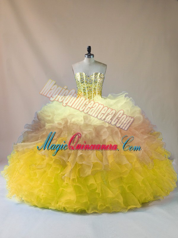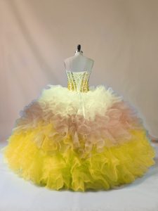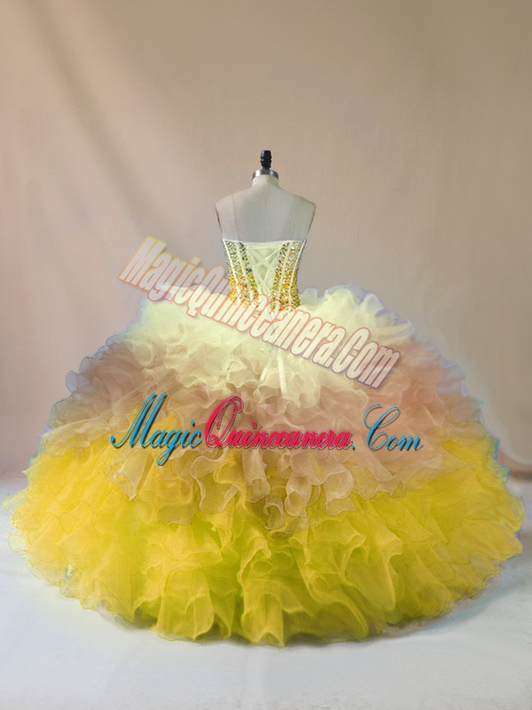 Multi-color Lace Up Vestidos de Quinceanera Beading and Ruffles Sleeveless Floor Length