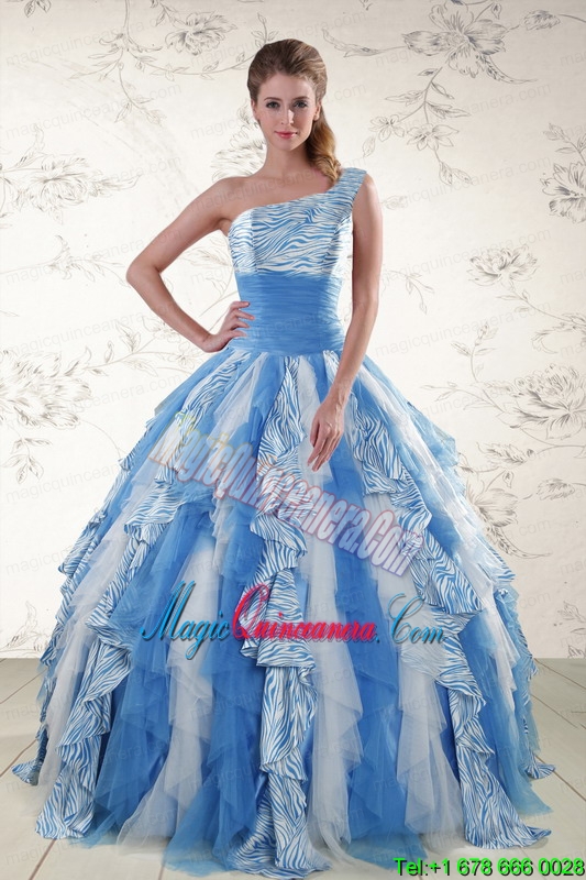 Multi Color One Shoulder Printed Quinceanera Dresses for 2015