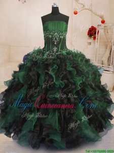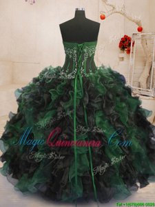 Multi-color Organza Lace Up Sweet 16 Quinceanera Dress Sleeveless Floor Length Beading and Ruffles