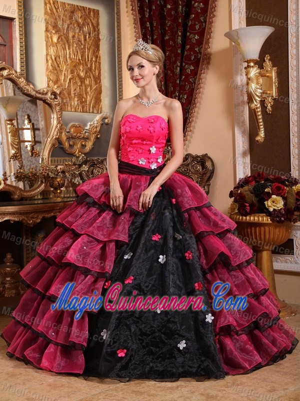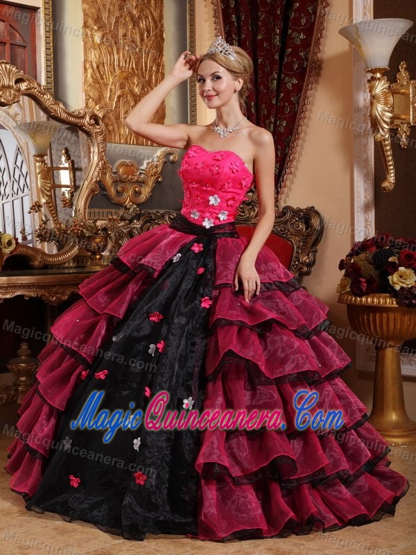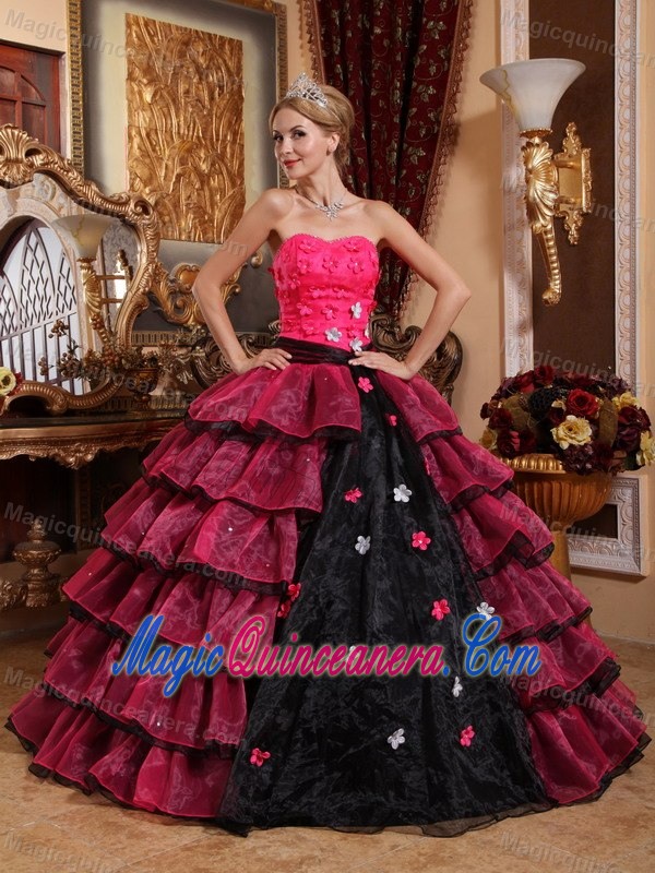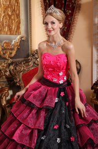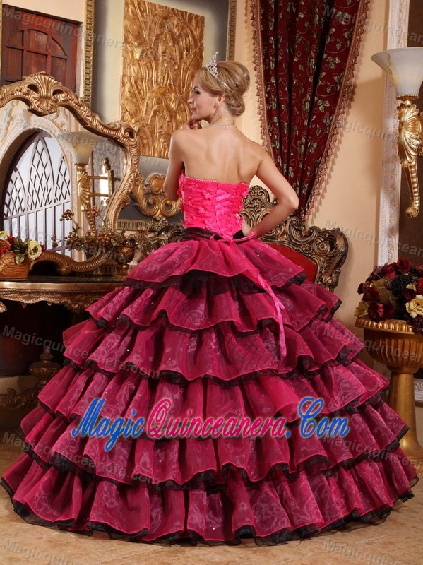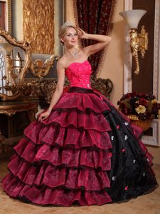 ruffled layers red and black lady of the quinceanera gown dresses,