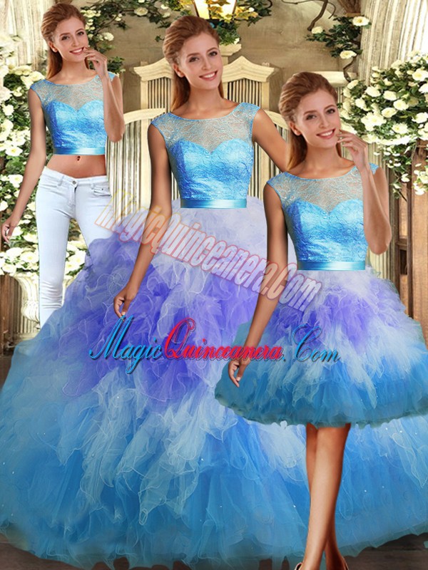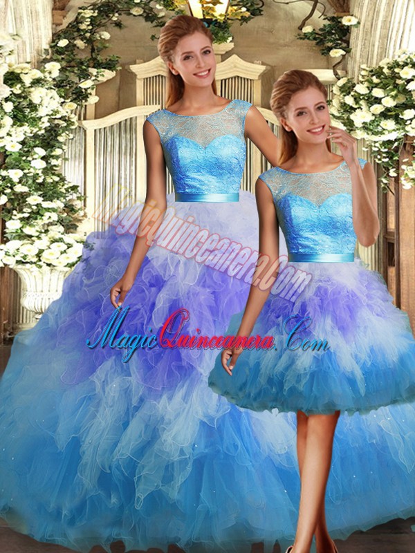 , Multi-color Scoop Neckline Lace and Ruffles Quinceanera Gowns Sleeveless Backless
