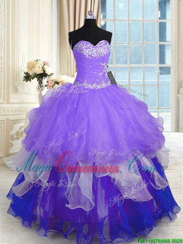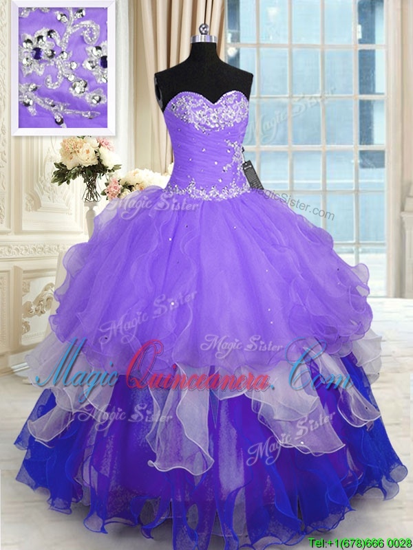 , Multi-color Sleeveless Beading and Ruffles Floor Length Vestidos de Quinceanera