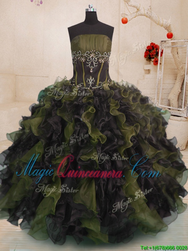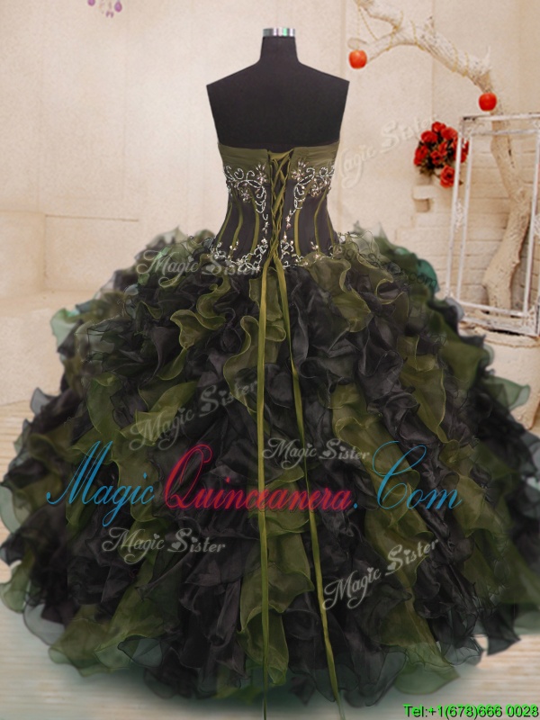 , Multi-color Sleeveless Floor Length Beading and Ruffles Lace Up Quinceanera Dress