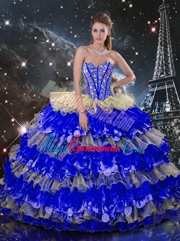 Multi-color Sleeveless Organza Lace Up Ball Gown Prom Dress for Military Ball and Sweet 16 and Quinceanera