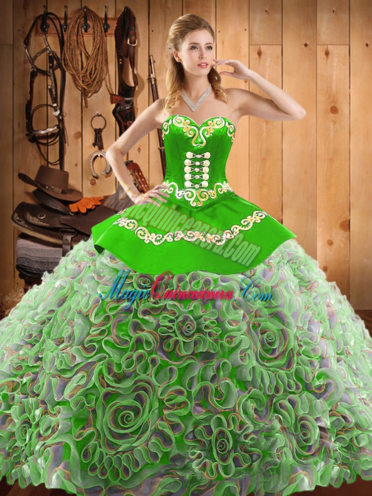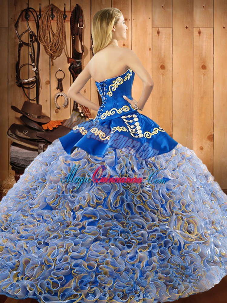 Multi-color Sleeveless With Train Embroidery Lace Up Quinceanera Dress