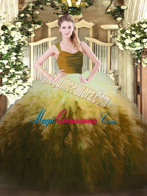 , Multi-color Straps Zipper Ruffles Quince Ball Gowns Sleeveless