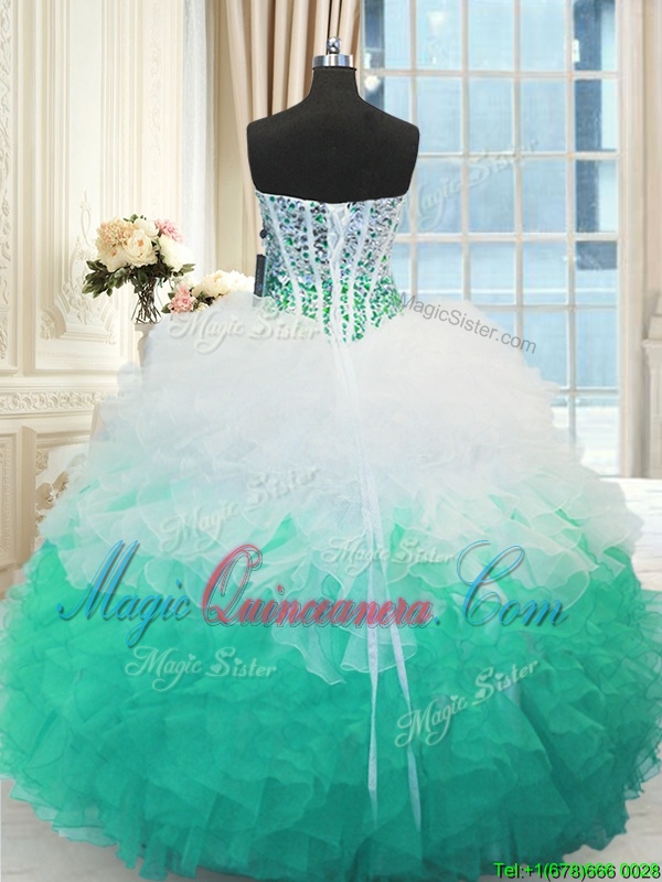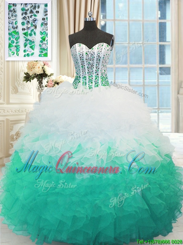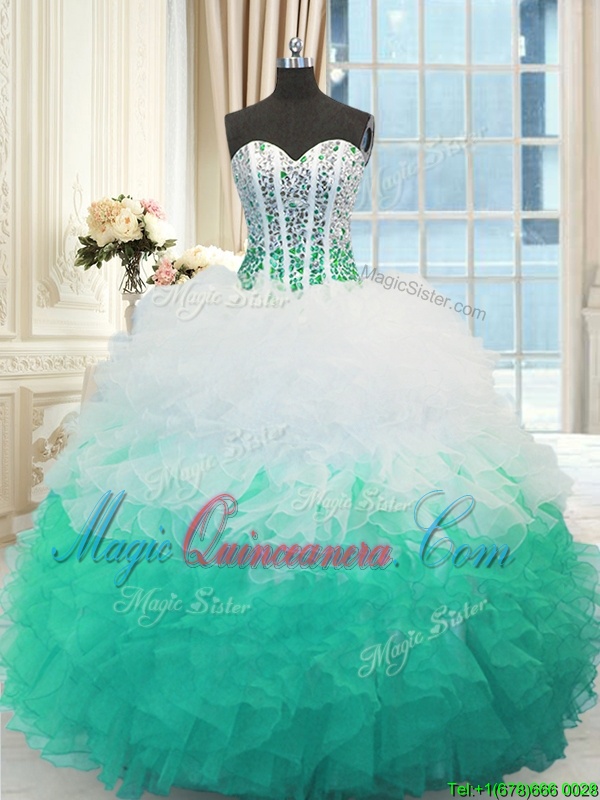 , Multi-color Sweetheart Lace Up Beading and Ruffles Quinceanera Dress Sleeveless