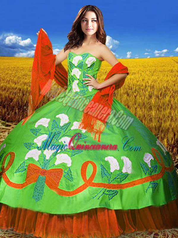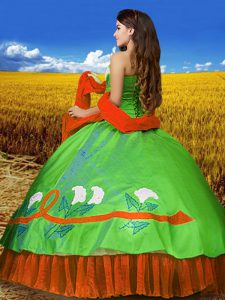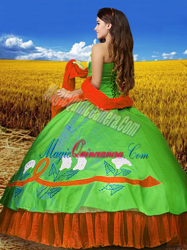 Multi-color Taffeta Lace Up Sweetheart Sleeveless Floor Length Quinceanera Dresses Embroidery