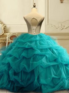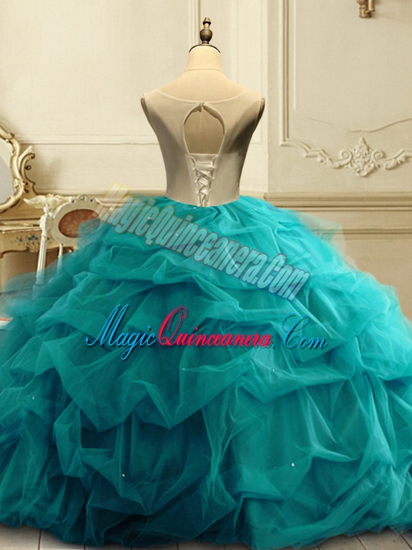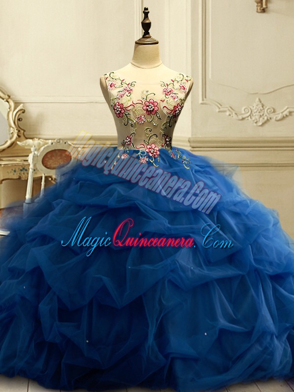 Navy Blue Scoop Lace Up Appliques and Ruffles and Sequins Quinceanera Dresses Sleeveless